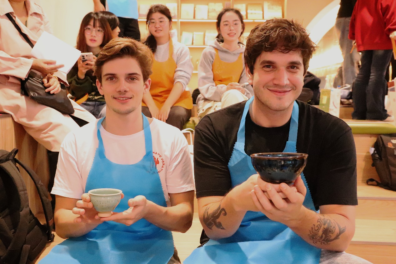 实践环节中,留学生们跃跃欲试,在大师父子的指导下亲手揉泥、拉坯,专注地雕琢着自己的作品。其中,巴西留学生萧俊安和李龙的作品因构思独特、手法娴熟受到大师特别肯定,获赠大师亲手制作的建盏珍品。“这是我第一次接触建盏,太神奇了!”萧俊安手持赠品兴奋地说。