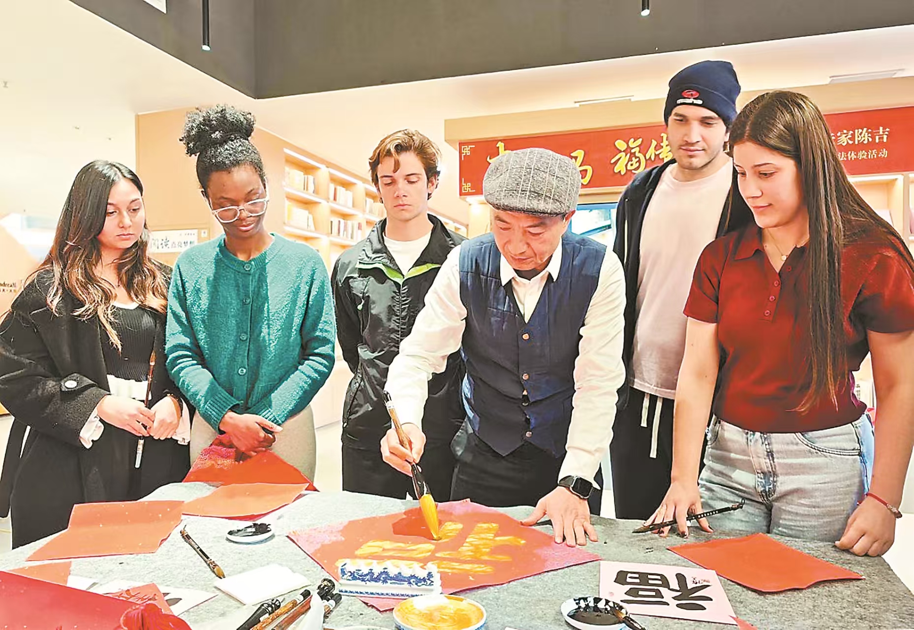 2026年元旦来临之际,我校各国留学生欢聚图书馆,参加“非遗大师劳作课”,共同书写“中国福”,沉浸式体验“福”文化。福建日报国际版给予报道。